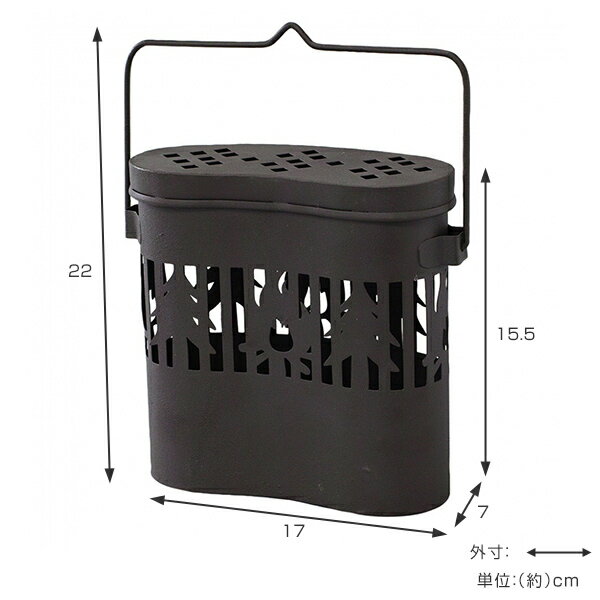 サイズ約 幅17×奥行7×高さ15.5(cm)持ち手を含めた高さ22(cm)重量:約340g内容量1個材質アイアン生産国中国製備考※蚊取り線香は付属しておりません。