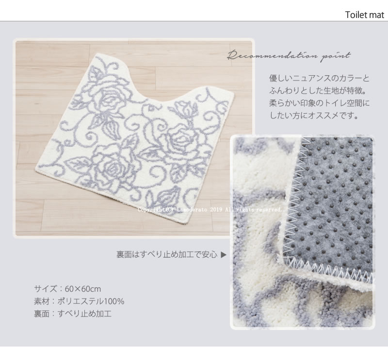 ⇒ ギフト対応について サイズ ■トイレマット 約 60×60cm ■洗浄便座用フタカバー ※必ず、適合サイズ・機種をご確認ください 素材 ■トイレマット ポリエステル100% マット裏面-すべりにくい加工あり ■洗浄便座用フタカバー ポリエステル100% カラー ライトピンク 原産国 中国 ご注意 ■トイレマット ・マットに飛び乗るとすべってけがをすることがありますので飛び乗らないでください。